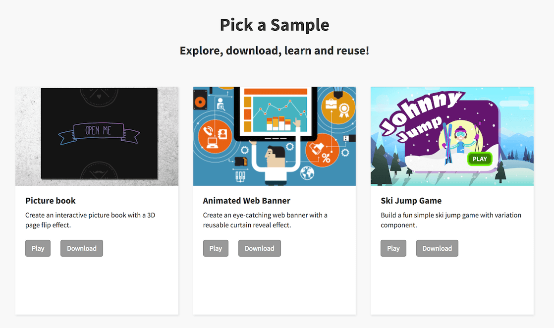 The range goes from easy-to-use banner revealer effects to ski jump games, with lots of eye candies and engaging content. And there is a lot more to come! So get ready to be inspired, even amazed maybe...