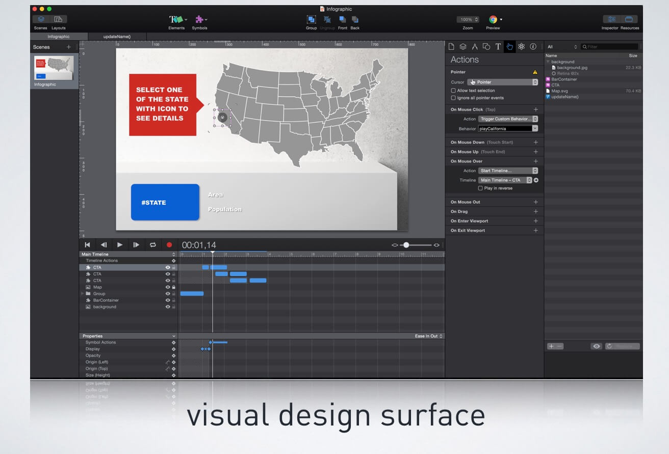 As such it is mainly targeted at designers and storytellers who want to visually compose interactive, animated content for HTML export. Let’s take a closer look what it has to offer and how it competes…