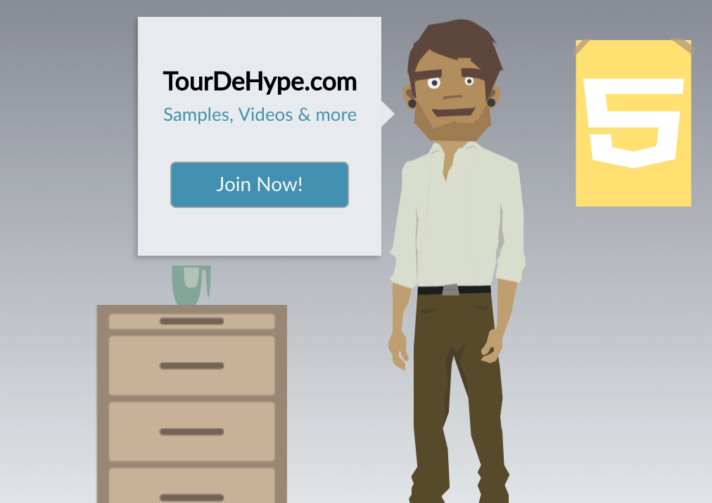 Tour de Hype is your free resource and asset hub for Hype. Our mission: Helping the creative community to get started by providing samples, tutorials and extensions. Stay informed about new samples, updates and useful tips for Hype.